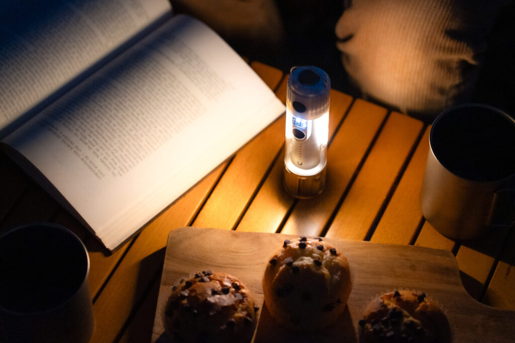 ランタンモードとは、懐中電灯を360°全周に光を拡散する置き型照明として使うモードのことです。停電が長引いたとき、片手にライトを持ち続けるのは非常に疲れます。ランタンモードに切り替えてテーブルや床に置けば、家族全員が見える「光の拠点」をつくることができます。