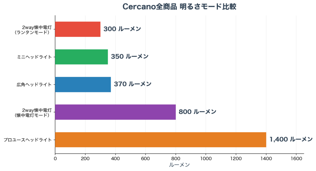 | 遠距離スポット照射(懐中電灯 or プロユースヘッドライト) | 500〜800lm |