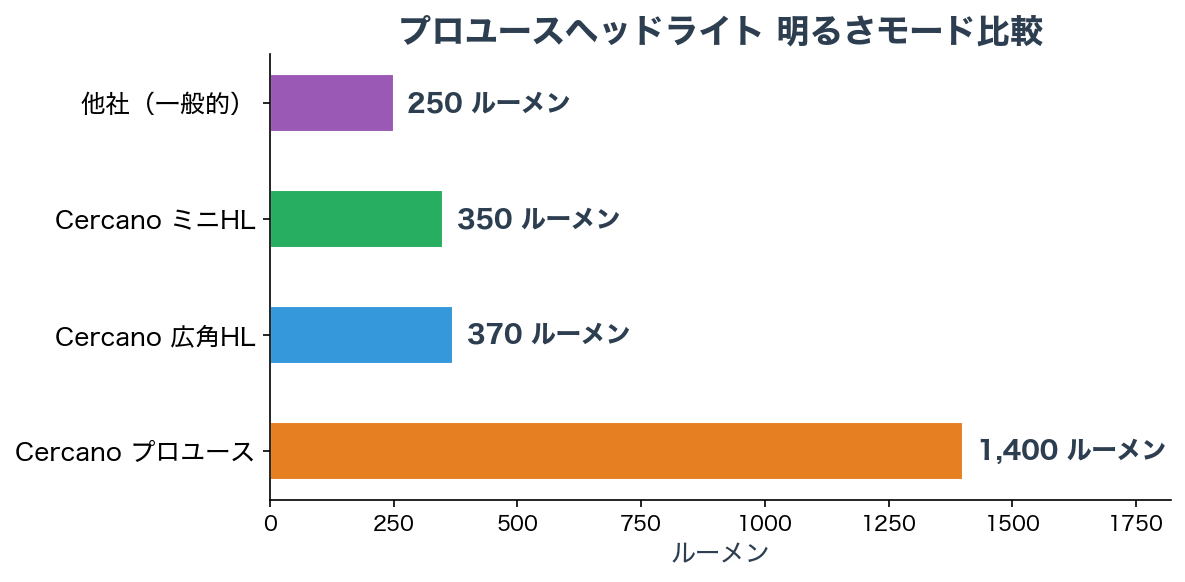 - 一般的なヘッドライトとCercanoプロユースモデルの客観的なスペック比較と、現場での差