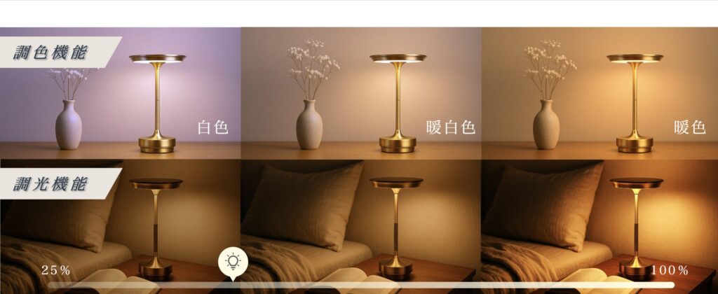 3000K・4000K・6000Kの3段階の色温度と無段階調光を組み合わせることで、「朝の読書」「夜寝る前の読書」「集中して作業したい時間」それぞれに最適な光を自分でつくれる設計にしました。
